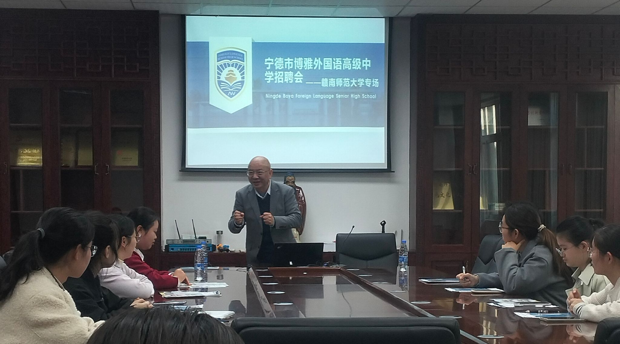 3月17日下午,文学院在卓尔楼一楼113会议室举办宁德市博雅外国语高级中学专场招聘会。本次招聘会得到了2025届毕业生积极响应与热情参与。招聘会现场。毕业生们怀揣着对教师职业的热忱与憧憬,与宁德市博雅外国语高级中学招聘负责人进行深入而细致的沟通交流。会上,招聘负责人围绕学校发展前景、岗位需求、薪资待遇、人才培养体系、学校概况等方面作了详细介绍,并对学生关注的发展空间、未来建设等进行了耐心解答。