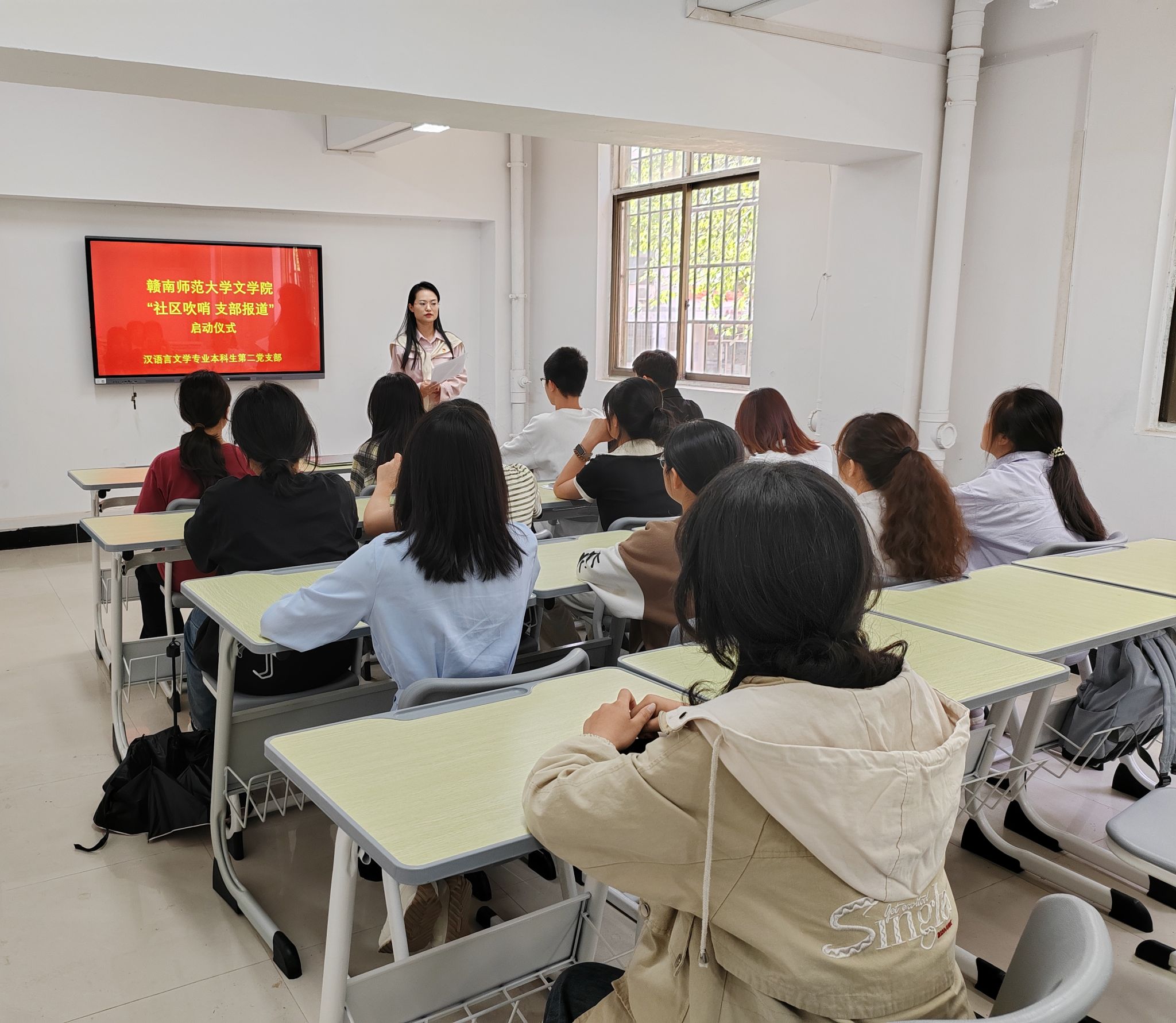 4月16日下午,文学院汉语言文学专业本科生第二党支部在西苑“一站式”服务中心活动室举办"社区吹哨,支部报到"党建活动启动仪式。支部师生党员齐聚一堂,通过党课学习、任务部署等形式,吹响党员服务社区"先锋号"。