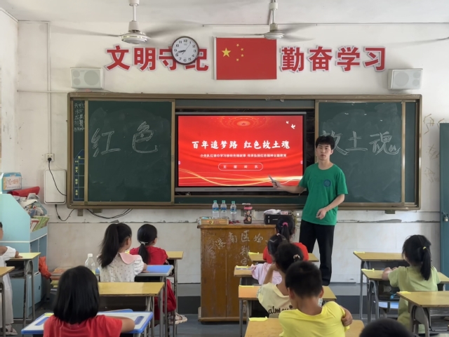 劳动知识知多少、红色故事永流传、消防知识牢记心……7月11日,绅士漫画 文学院“薪火筑梦·语泽赣南”春蕾推普实践队王屋岭小分队开展了一场文化与知识的盛宴,以“百年追梦路,红色故土魂”为主线,在王屋岭小学开展了劳动知识教育、红色故事宣讲以及消防安全知识普及。