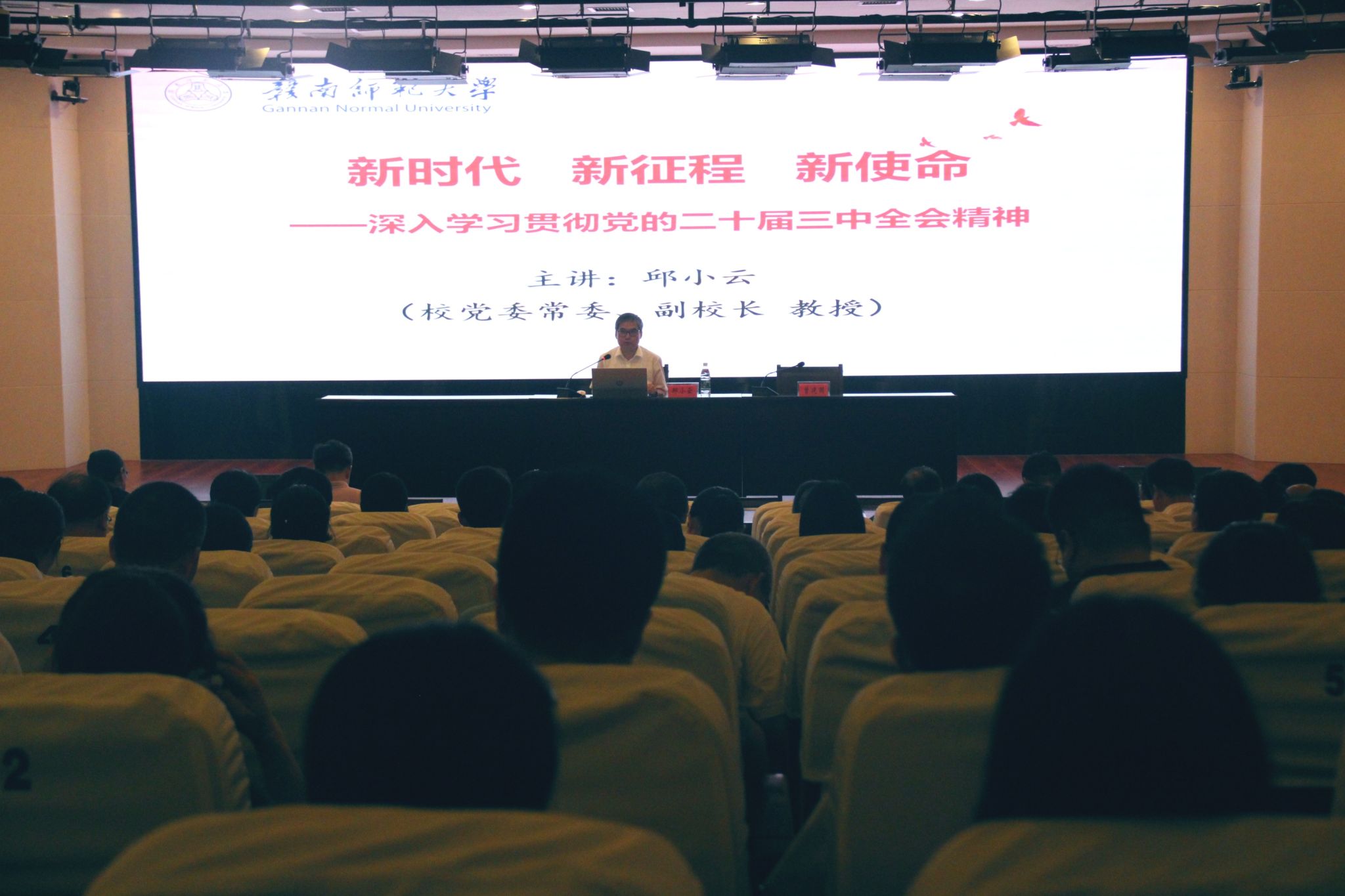 9月13日,校党委常委、副校长邱小云以《新时代 新征程 新使命——深入学习贯彻党的二十届三中全会精神》为题,为文学院、马克思主义学院师生宣讲党的二十届三中全会精神。